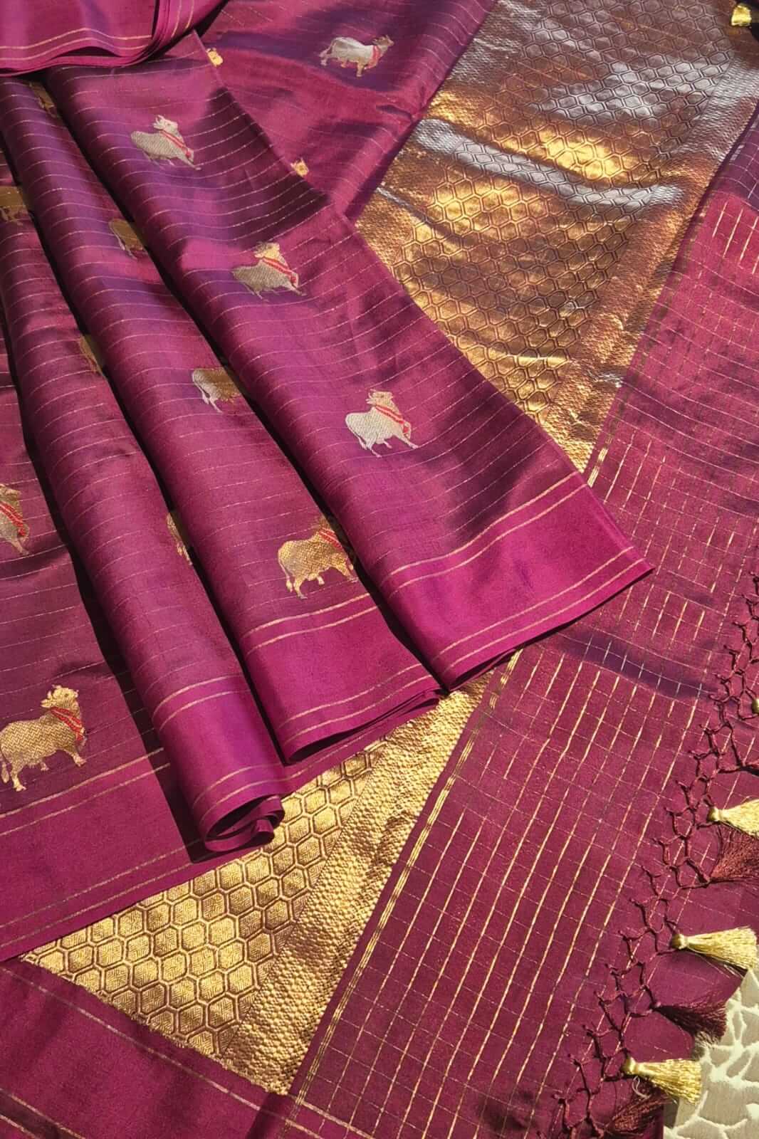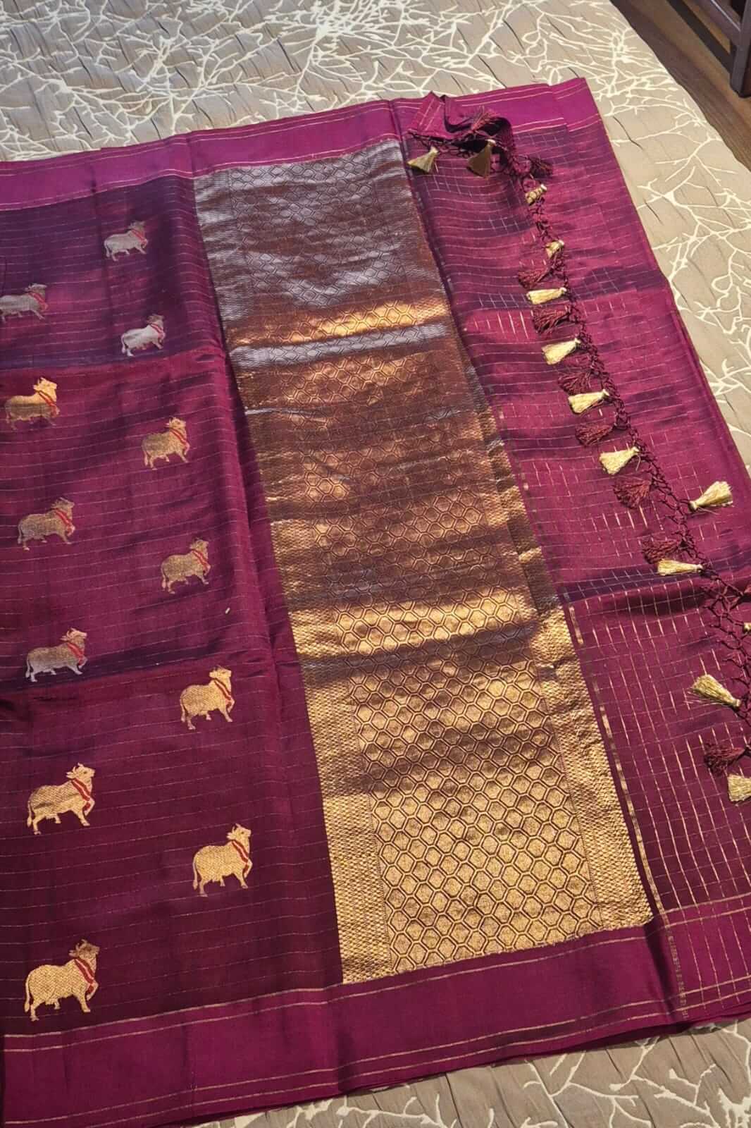 Handwoven Banarasi Soft silk saree with Kadhua motis